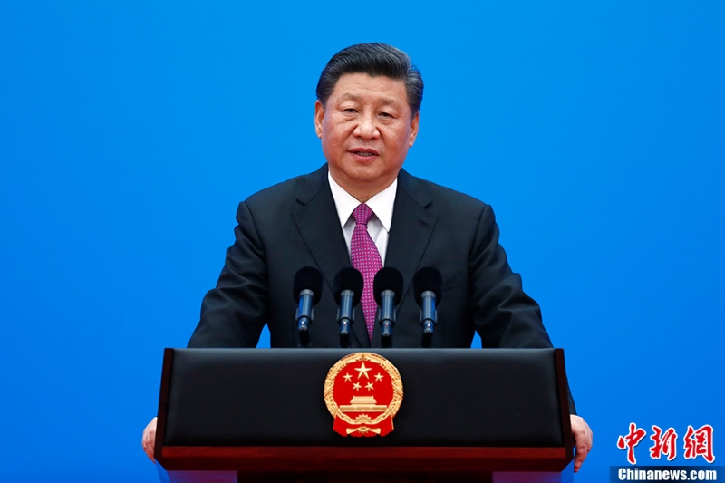 2019年4月27日,第二屆“一帶一路”國際合作高峰論壇在北京雁棲湖國際會議中心舉行圓桌峰會。圓桌峰會閉幕后,習(xí)近平會見中外記者,介紹第二屆“一帶一路”國際合作高峰論壇圓桌峰會情況和主要成果。中新社記者 富田 攝