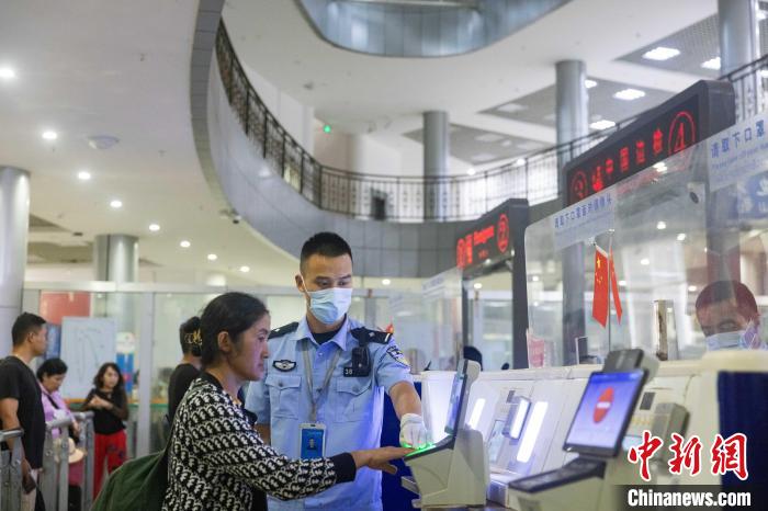 圖為民警引導旅客辦理通關手續(xù)。衛(wèi)海林攝