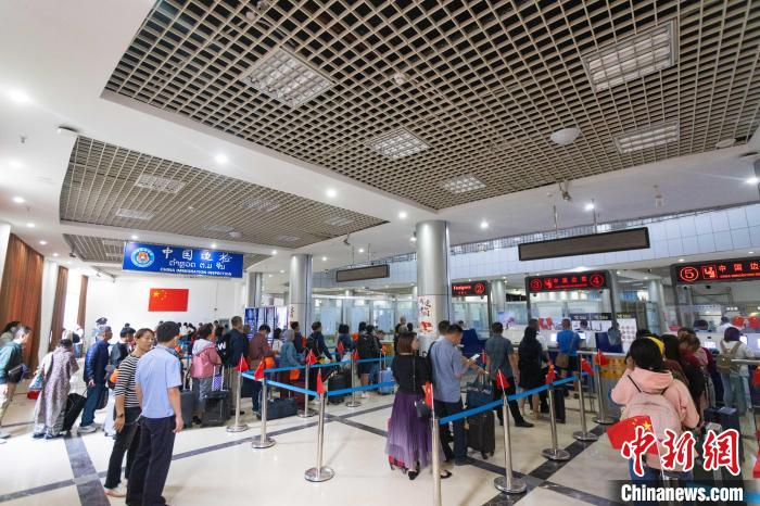 圖為旅客在磨憨口岸有序排隊候檢。衛(wèi)海林攝