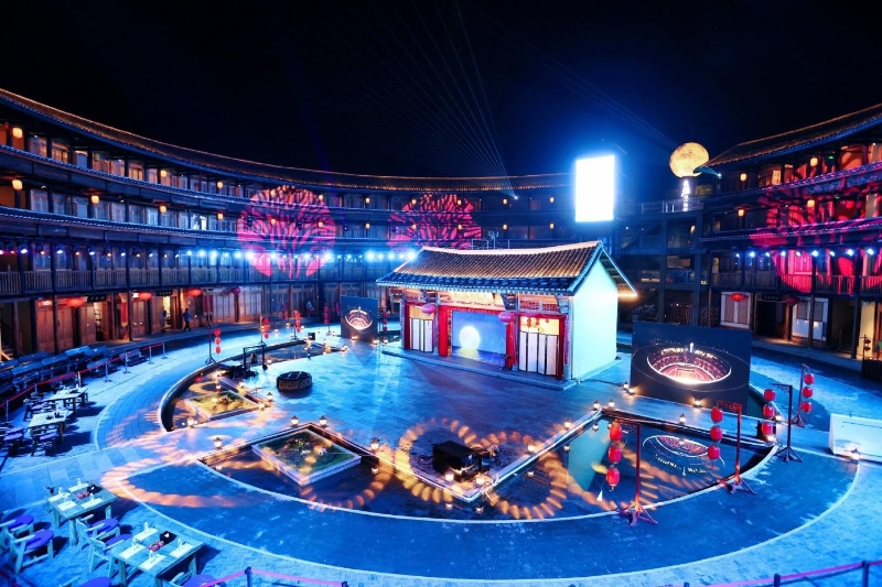 在實(shí)體環(huán)興樓中,游客們能夠享受集沉浸式導(dǎo)游、互動(dòng)式展覽館、角色扮演實(shí)景劇本殺于一體的沉浸式劇場(chǎng),與來自永定當(dāng)?shù)厮囆g(shù)團(tuán)的演員NPC一起經(jīng)歷兩天一夜或三天兩夜的劇情演繹。玩家將進(jìn)入依托于《天涯明月刀》IP世界觀的獨(dú)特故事,劇本將會(huì)融入當(dāng)?shù)氐奶厣沁z文化體驗(yàn),即使不是游戲玩家,也輕松入戲,在愉快的游玩體驗(yàn)中領(lǐng)略當(dāng)?shù)氐娘L(fēng)土人情。
