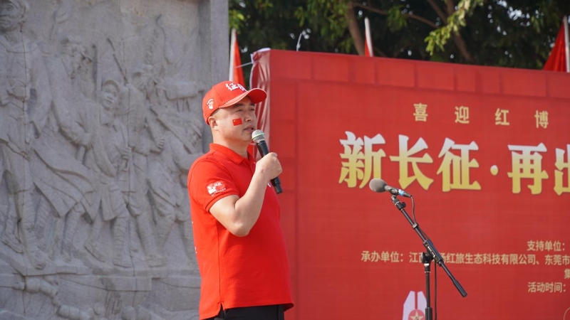 活動(dòng)伊始,江西鳴揚(yáng)紅旅生態(tài)科技有限公司董事長(zhǎng)李斌發(fā)表了熱情洋溢的致辭,他致辭中說(shuō)到:長(zhǎng)征體現(xiàn)了共產(chǎn)黨人堅(jiān)定的信念、勇氣和毅力、是我們民族歷史上一座不朽豐碑。江西鳴揚(yáng)紅旅公司的發(fā)展過(guò)程中將不斷汲取長(zhǎng)征精神、傳承紅色基因、賡續(xù)紅色血脈,同時(shí)擘畫(huà)了鳴揚(yáng)紅旅的未來(lái)發(fā)展藍(lán)圖。隨后,東莞市征徒公益服務(wù)中心創(chuàng)始人、征徒總指揮李耀亮先生闡明了本次活動(dòng)的意義,希望大家能夠在這本活動(dòng)中感受紅色力量、覺(jué)醒紅色基因,堅(jiān)定“路雖遠(yuǎn)行則將至、事雖難做則必成”的信念。