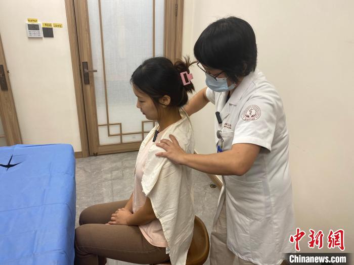 接下來許麗用手微微握拳,在記者左邊肩頸處反復(fù)做著“來回滾動(dòng)”的動(dòng)作?!斑@叫‘?法’,可以充分放松肌肉,它是一種柔和有力、剛?cè)岵?jì)的中醫(yī)推拿代表性手法?!痹S麗說,記者群體中,肩頸疼痛是最普遍的問題?!案邚?qiáng)度的工作會(huì)讓記者常感到頭暈、肩背酸脹,這時(shí)需要一定的肌肉放松才能消除不適感。”