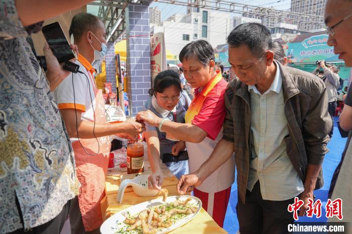 活動(dòng)現(xiàn)場人聲鼎沸,熱鬧非凡,各展位一字排開,攤位前擠滿品嘗美食的市民,具有梧州特色的菜肴和小吃,讓人既飽口福又飽眼福。