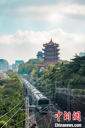 京廣鐵路與黃鶴樓同框。(資料圖) 吳淘淘 攝