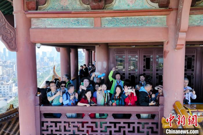 10月17日,來自美國、加拿大、瑞典等8個(gè)國家的17位華文媒體代表游覽黃鶴樓,探訪古城的古意與“新生”。