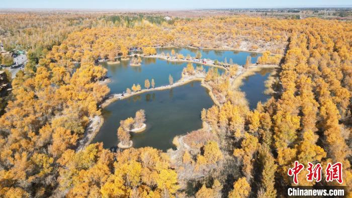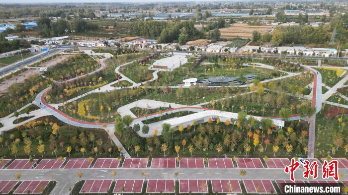 10月16日,“中新觀隴·酒泉金塔周”聯(lián)動融合采訪走進(jìn)甘肅省酒泉市金塔縣。圖為航拍會水公園。(無人機(jī)照片) 九美旦增 攝