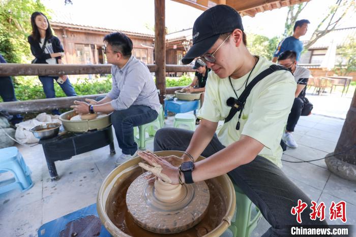 10月18日,江西吉安縣,參加2023兩岸媒體江西廬陵文化行活動的兩岸媒體人走進(jìn)吉州窯國家考古遺址公園參觀采訪,游覽了中國吉州窯博物館并體驗了陶藝?yán)?,深度沉浸式感受陶瓷文化的魅力。吉州窯創(chuàng)燒于晚唐,距今已有1200年歷史,現(xiàn)存從晚唐至宋元時期的24座窯包是目前世界上發(fā)現(xiàn)規(guī)模最大、保存最完整的古民窯遺址群之一。
