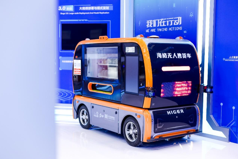 此外,蘇州金龍無人駕駛作業(yè)車也在ITS世界大會展區(qū)及現(xiàn)場演示區(qū)亮相。其中,蘇州金龍海格無人清掃車,小巧靈活,可云端任務(wù)下發(fā)、實時監(jiān)控,自動巡航完成多路段、多場景的自動清掃作業(yè);海格無人售賣車則支持掃碼定點??浚〕绦蛳聠魏蠛艚惺圪u車自動駕駛送達(dá)站點,可滿足園區(qū)、社區(qū)等場景移動售賣需求。