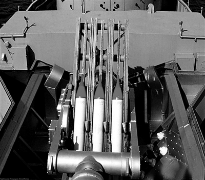 隨著科技的發(fā)展,深水炸彈帶著“慣性”又向前發(fā)展了一段時(shí)間。全自動(dòng)的大口徑反潛火箭深彈如美國(guó)的阿爾法系統(tǒng)、多管大口徑火箭深彈如博福斯、帶定向器的反潛迫擊炮如意大利梅農(nóng)等先后出現(xiàn),不僅射程更遠(yuǎn)、威力更大,其操作也更加方便。