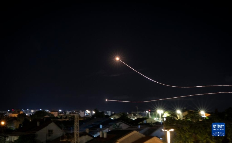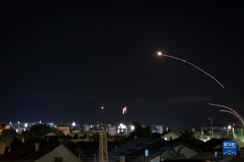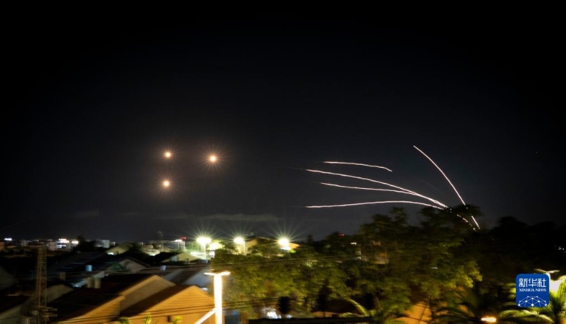 當(dāng)晚,來(lái)自加沙的火箭彈不斷射向以色列南部邊境城市。以色列“鐵穹”防御系統(tǒng)劃破夜空進(jìn)行攔截。