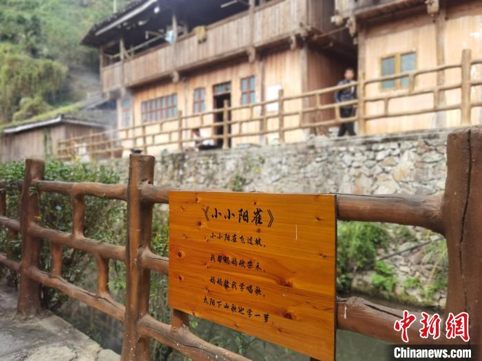 小黃村小學(xué)位于村寨的西北角,需要沿著一條小溪前行。行走其間,隨處可見寫有侗歌的木板掛在護欄上,比如《陽雀歌》:“小小陽雀飛過坡,我?guī)蛬寢尶巢窈?;媽媽教我學(xué)唱歌,太陽下坡山歌也學(xué)一籮?!?/p>
