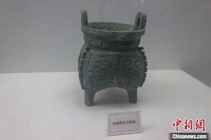 圖為大洋洲商代青銅博物館展出的獸面錐足青銅鼎。劉力鑫 攝