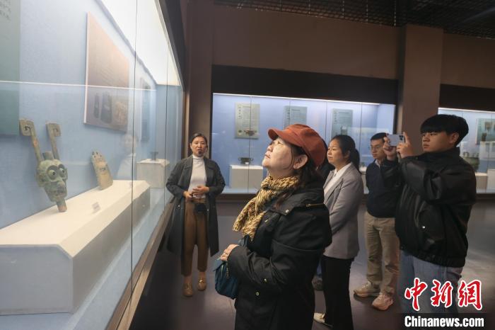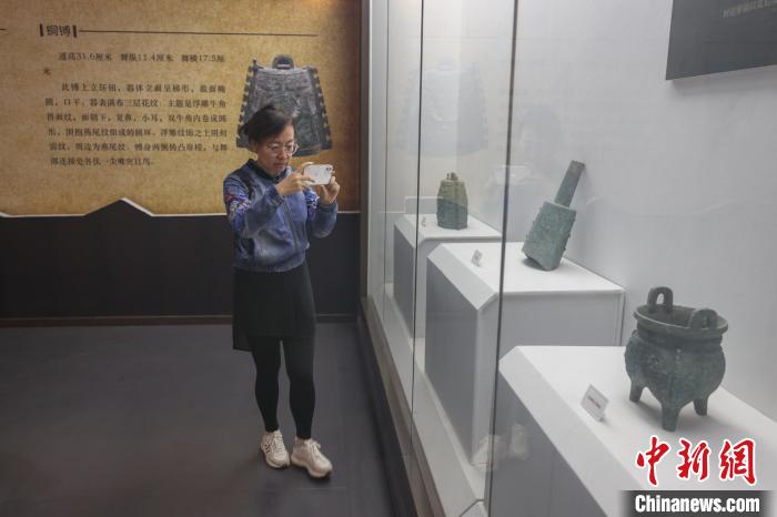 10月20日,江西吉安新干縣,參加2023兩岸媒體江西廬陵文化行活動的兩岸媒體人走進建立在新干商代大墓遺址上的大洋洲商代青銅博物館參觀采訪,感受古老神秘的青銅文化魅力。新干商代大墓共出土青銅器475件,玉器754件,陶器139件,其中五件文物被定為國寶級文物。該墓出土的青銅器數(shù)量之多、紋飾之美、鑄工之精、造型之巧,震驚中外,被評為“七五”期間全國十大考古發(fā)現(xiàn)之一,新干因此被譽為“江南青銅王國”。
