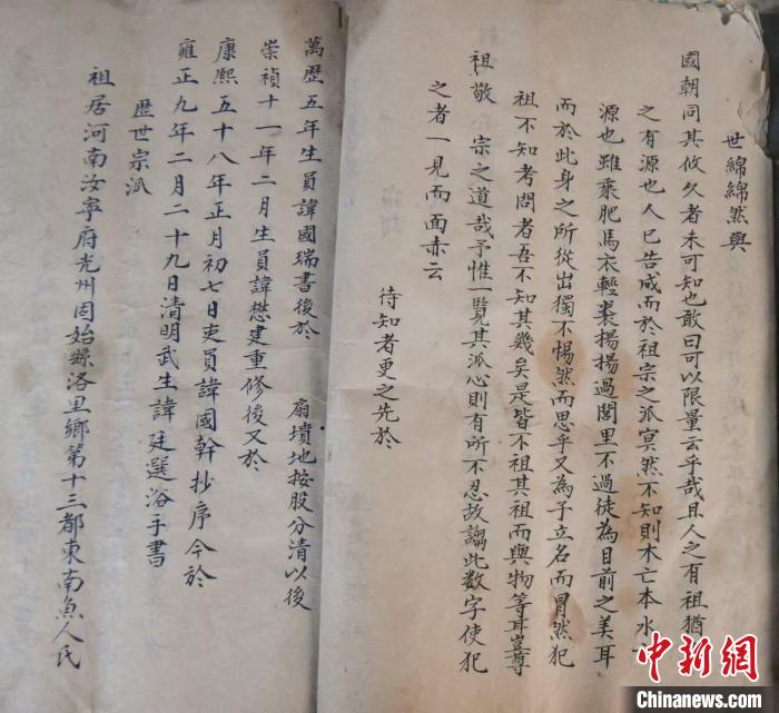 中新網(wǎng)邯鄲10月20日電 (記者 王天譯)河北省邯鄲市廣平縣文物保護(hù)管理所工作人員20日透露,該所近日進(jìn)行文物普查時(shí),在廣平縣十里鋪鎮(zhèn)南寺郎固村發(fā)現(xiàn)兩本《王氏族譜》,最早為清代道光十九年(1839年)修撰,距今已有184年歷史。