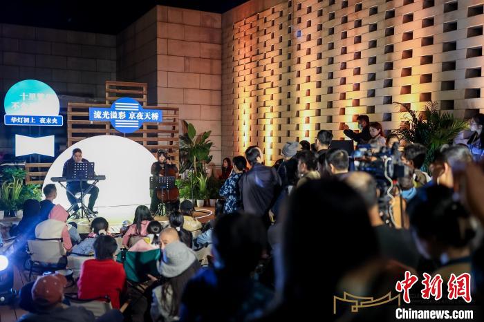 2023“南中軸·夜天橋”藝術(shù)推廣活動(dòng)現(xiàn)場(chǎng)的室外小型音樂(lè)會(huì)?!√鞓蛩囆g(shù)中心供圖