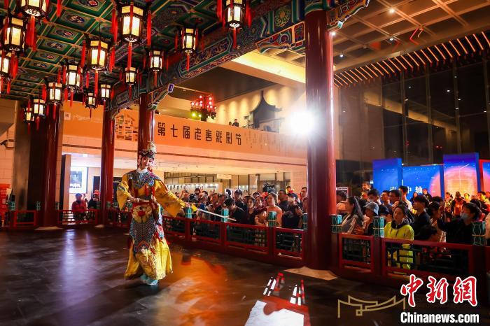 2023“南中軸·夜天橋”藝術(shù)推廣活動(dòng)現(xiàn)場(chǎng)的京劇表演?!√鞓蛩囆g(shù)中心供圖