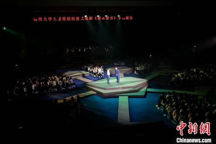 22日晚,福州大學(xué)學(xué)生演出的大型原創(chuàng)沉浸式戲劇《嘉木流芳》亮相第五屆福建省大學(xué)生戲劇節(jié)開幕式現(xiàn)場。福建省戲劇家協(xié)會供圖