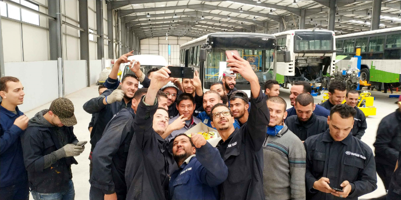 蘇州金龍KD工廠的建立,可謂一種推動力。為了讓海格客車更深更長遠(yuǎn)行駛在阿爾及利亞,蘇州金龍派出不少技術(shù)、品質(zhì)和服務(wù)人員,對當(dāng)?shù)氐募夹g(shù)和管理人員進(jìn)行各種形式的培訓(xùn),教會他們?nèi)绾紊a(chǎn)、如何品控、如何服務(wù)。而這一批人將會像種子一樣,未來將成為阿爾及利亞制造業(yè)的棟梁。