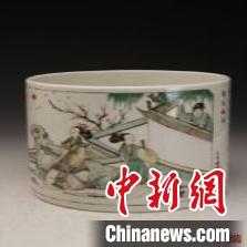 清康熙年間五彩《西廂記》大筆筒。廣東省博物館供圖