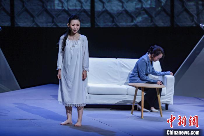 該劇還加入實時影像裝置,多媒體影像與舞臺表演相結(jié)合,聚焦人物表情特寫、放大表演情緒的同時,也給全劇增添了電影質(zhì)感。