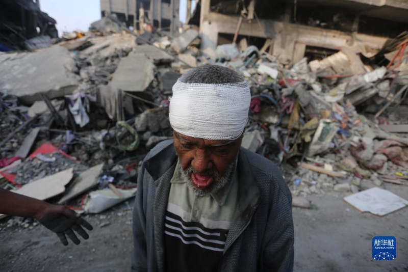 10月25日,在加沙地帶南部城市拉法,一名在以色列空襲中受傷的老人頭部裹著紗布。