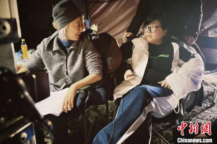 《田耕紀》導(dǎo)演洪泠(左)與剪輯指導(dǎo)、聯(lián)合導(dǎo)演張書蘅在拍攝現(xiàn)場。受訪者供圖