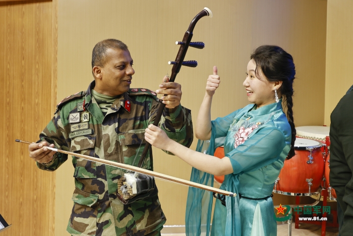 軍事文化學(xué)院實驗藝術(shù)劇院紅星民族樂隊向外軍學(xué)員展示了中國民族器樂演奏,贏得大家陣陣喝彩。同時,雙方還圍繞軍事文藝創(chuàng)作、民族文化溝通等話題進(jìn)行探討交流,現(xiàn)場氣氛熱烈、情緒高漲。