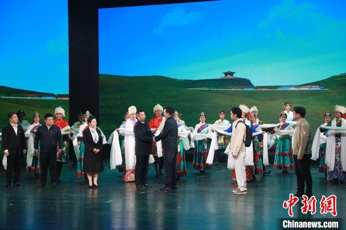 中新網(wǎng)西寧10月27日電 (李洪斌 許祥虎 張?zhí)砀?26日晚,青海省海南藏族自治州大型原創(chuàng)民族音樂劇——《遇上你是我的緣》赴江蘇首場感恩演出在南京市荔枝大劇院舉行。