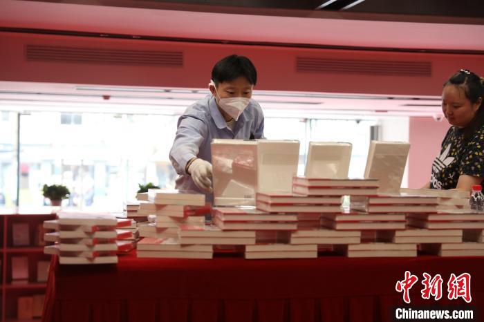 10月27日,店員正對(duì)上海書城一樓的圖書展陳進(jìn)行最后調(diào)整。中新網(wǎng)記者 張亨偉 攝