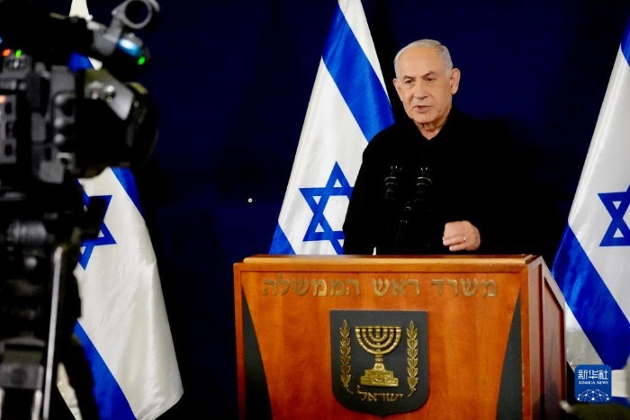 10月30日,以色列總理內(nèi)塔尼亞胡在特拉維夫出席記者會(huì)。新華社記者王卓倫攝
