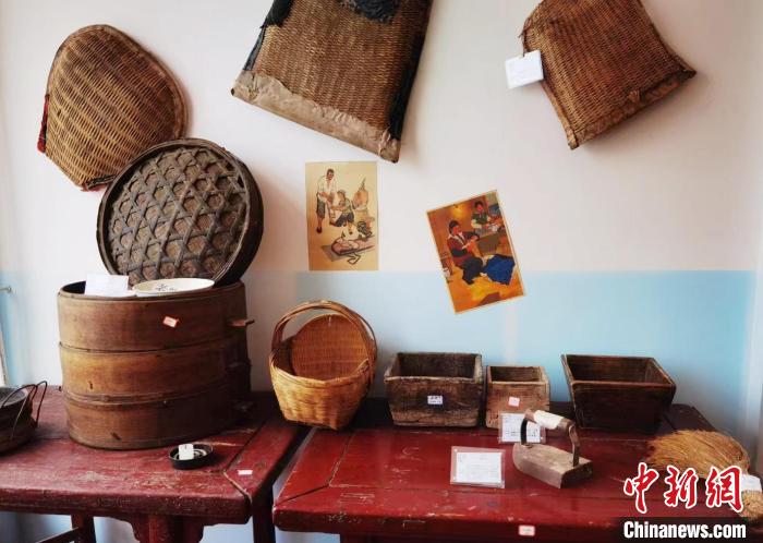 圖為鄉(xiāng)土展覽館中陳設的各式簸箕等舊物。劉可 攝