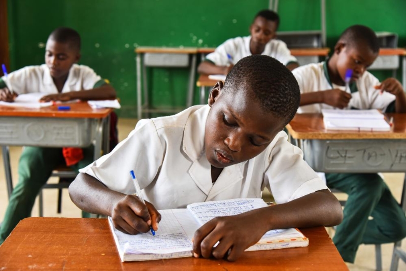 2023年1月10日,在喀麥隆濱海大區(qū)亞巴西,一名學(xué)生在中國援建的農(nóng)業(yè)職業(yè)技術(shù)中學(xué)上課。新華社發(fā)(科普索攝)