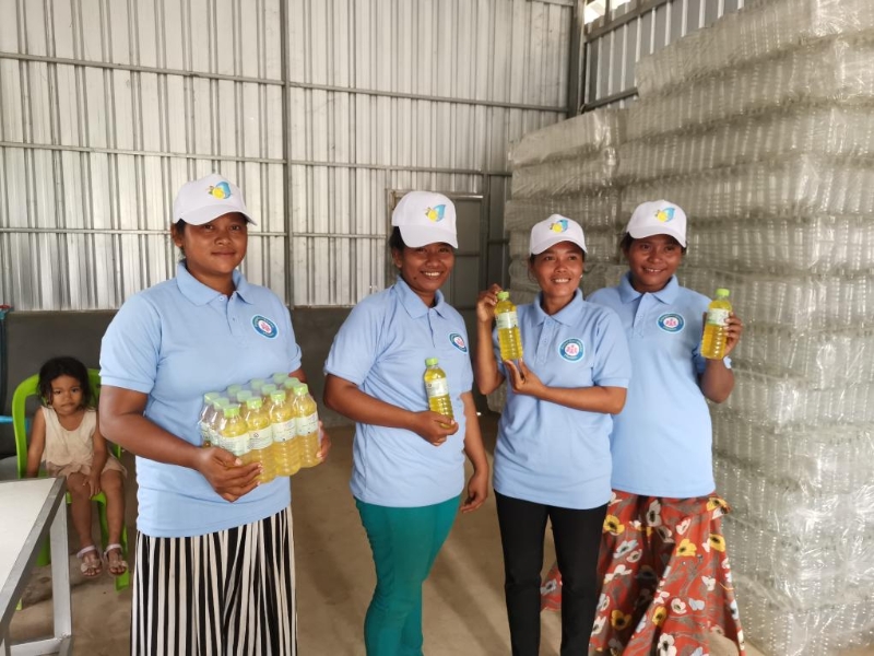 2020年7月31日,村民在柬埔寨干丹省莫穆坎普縣斯瓦安普鄉(xiāng)的洗潔精加工廠展示生產(chǎn)的洗潔精。中國援柬減貧示范合作項(xiàng)目推動這里的兩個扶貧村在新冠疫情下持續(xù)發(fā)展,煥發(fā)出新活力。新華社發(fā)
