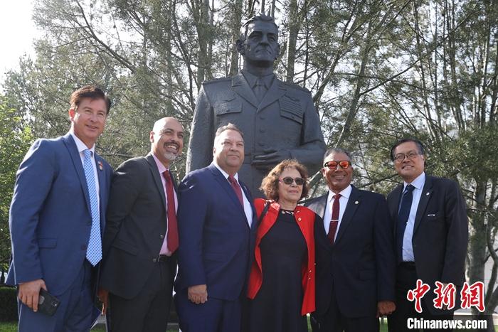 在參訪最后環(huán)節(jié),美方代表團成員陸續(xù)向陳納德將軍雕像敬獻上一束白色雛菊表達敬意。98歲的麥克馬倫走到雕像前,鄭重擺放好手里的鮮花并向雕像敬禮致意。離開時,他的腳步有些蹣跚。(完)