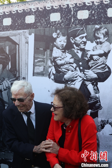 看到這些珍貴的照片,莫耶和麥克馬倫從輪椅上緩緩起身,顫顫巍巍地走到照片墻前和飛虎隊后人們分享當(dāng)時的非凡歲月。在閃光燈和快門聲里,又一歷史的瞬間在此刻被定格。