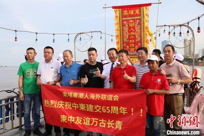 柬埔寨潮人海外聯(lián)誼會成員在游船上合影留念。黎海月攝