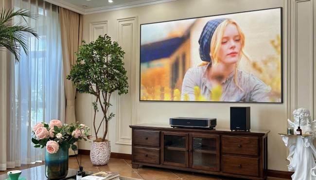 海信激光電視采用當前市面上最新的第四代顯示技術(shù)打造。不同于第三代顯示技術(shù)液晶顯示技術(shù),它采用純凈的激光作為光源,反射成像光線柔和,呈現(xiàn)給消費者的影像既舒適又真實自然。由于光線柔和舒適,3米就可以看百吋。且安裝100吋只需要3米視距,大部分客廳都可以裝得上,可謂是最適合大部分家庭安裝的第一臺百吋電視。