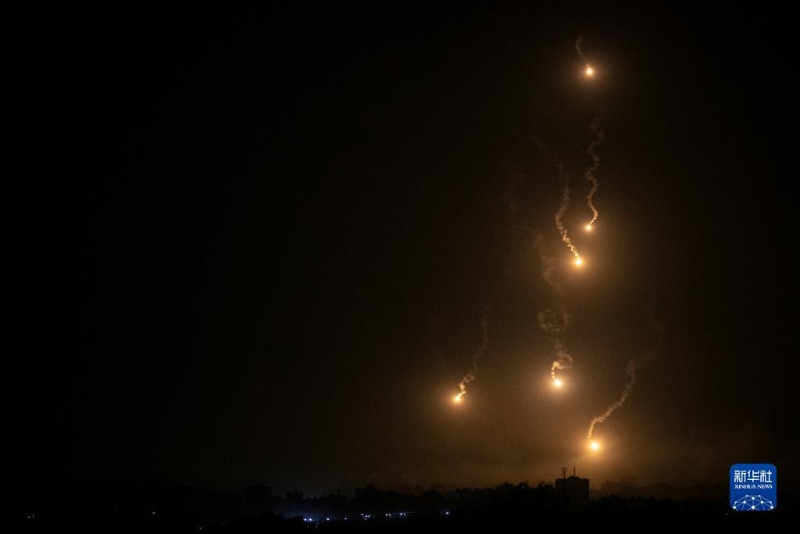 這張10月30日在加沙邊境以色列一側(cè)拍攝的照片顯示,從加沙地帶發(fā)射的火箭彈在空中留下煙軌。