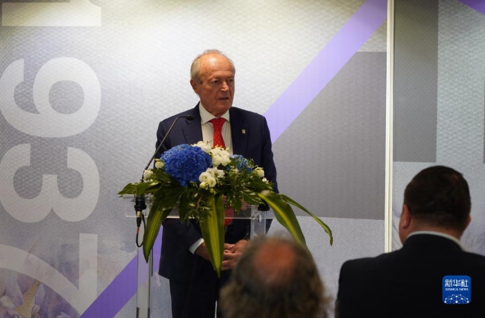 10月30日,在匈牙利布達(dá)佩斯,匈牙利前總理邁杰希·彼得在《世界記憶、和平愿景——南京大屠殺史實展》開展儀式上致辭。新華社記者 陳浩 攝
