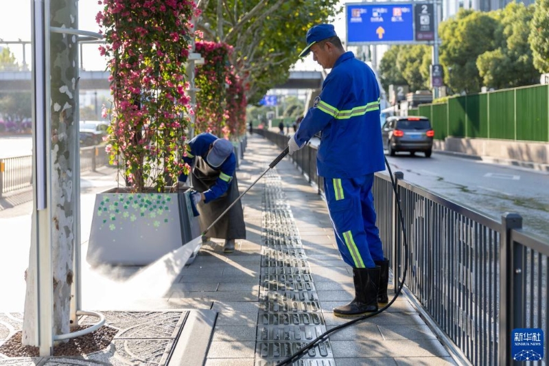 10月31日,環(huán)衛(wèi)工人在場(chǎng)館周邊進(jìn)行清潔工作。
