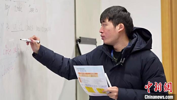 臺灣青年黃皓正在教法語課程。(受訪者供圖)