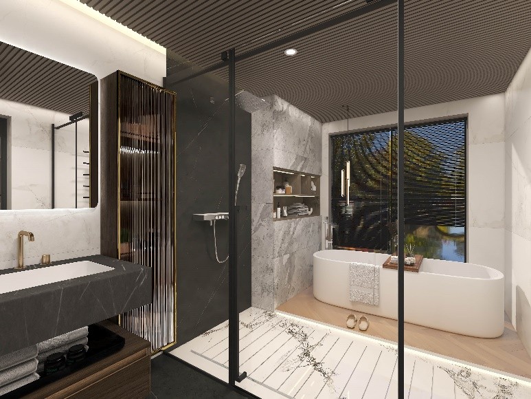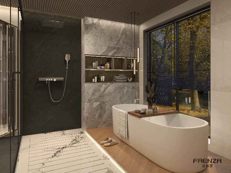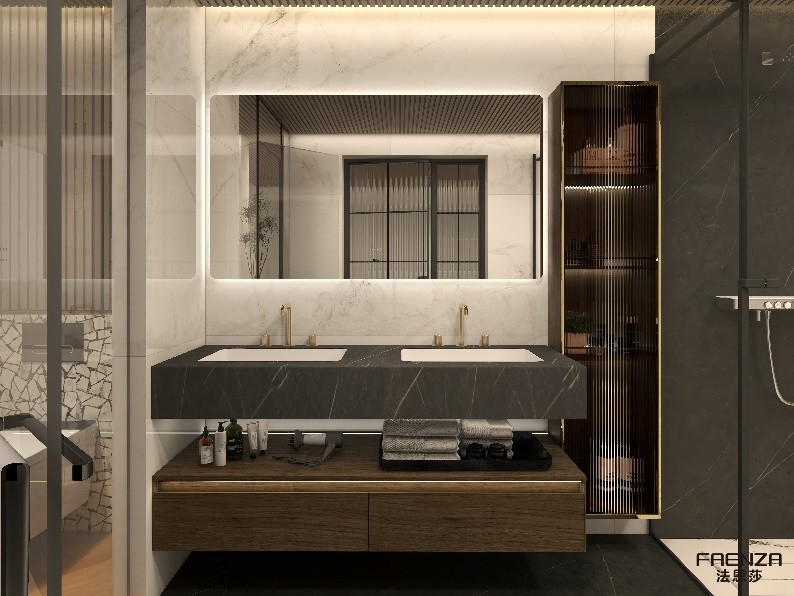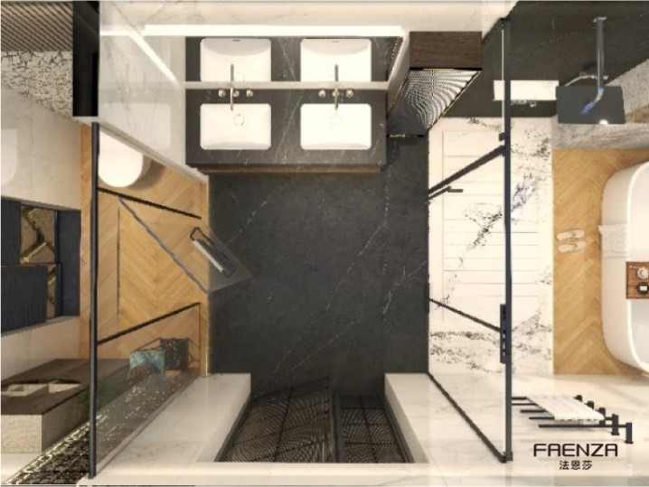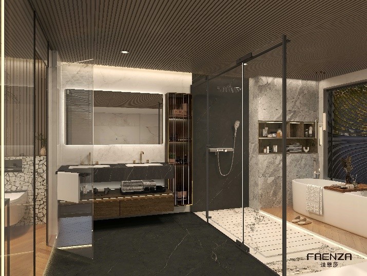 本案業(yè)主熱衷于東方美學(xué),崇尚一種優(yōu)雅的生活方式,不僅要求整體的室內(nèi)設(shè)計風(fēng)格與追求相契合,更對細(xì)節(jié)有著極致的追求,渴望在整個衛(wèi)生間空間體驗(yàn)到藝術(shù)美學(xué)與極致舒適的高品質(zhì),法恩莎設(shè)計師嘗試通過業(yè)主的內(nèi)心感悟轉(zhuǎn)為有型空間表達(dá),構(gòu)造出獨(dú)特身心體驗(yàn)的隱逸之所。