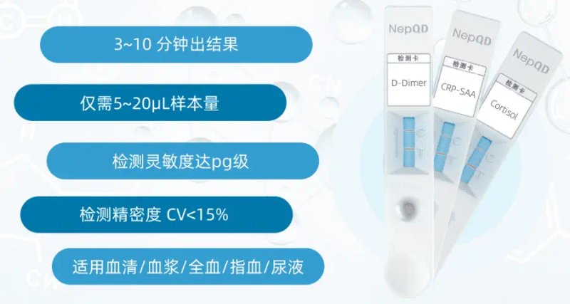 以及涵蓋心血管疾病、慢病、性激素、炎癥感染、腎損傷、貧血等多項(xiàng)量子點(diǎn)免疫熒光體外診斷試劑和常年穩(wěn)定供應(yīng)院線的各型號干式免疫熒光分析儀。