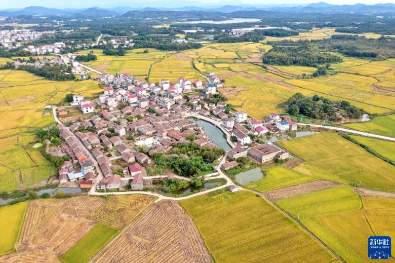 10月30日在江西省撫州市金溪縣陳坊積鄉(xiāng)城湖村拍攝的秋景(無人機(jī)照片)。