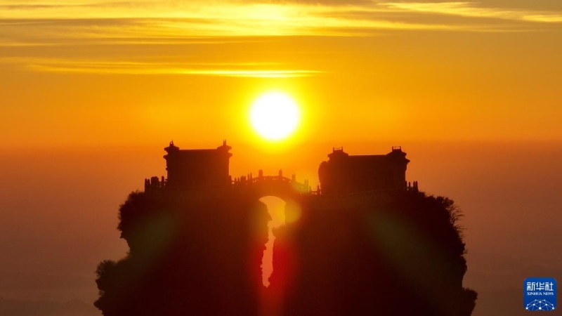 11月1日在貴州梵凈山國家級自然保護(hù)區(qū)拍攝的日出景觀(無人機(jī)照片)。