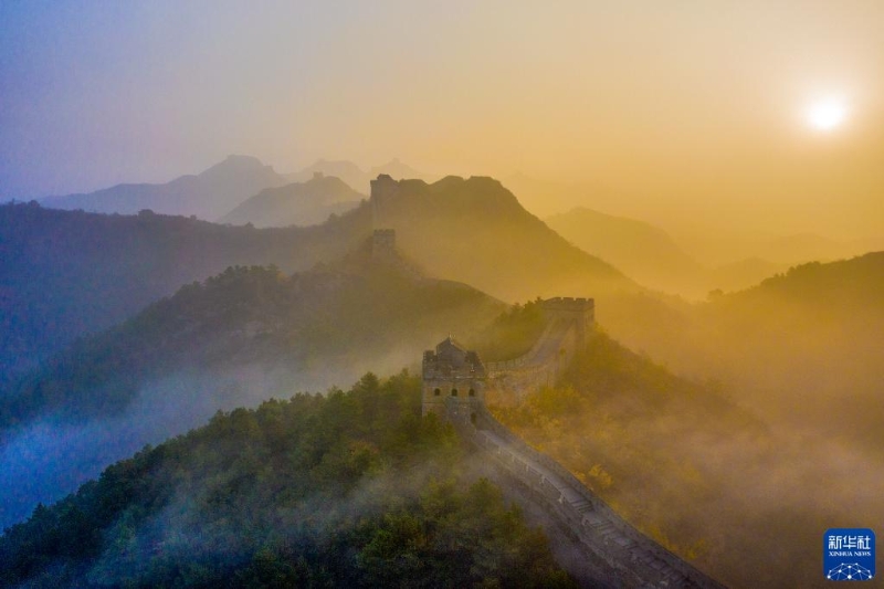 這是11月1日拍攝的河北承德金山嶺長城日出景觀(無人機(jī)照片)。