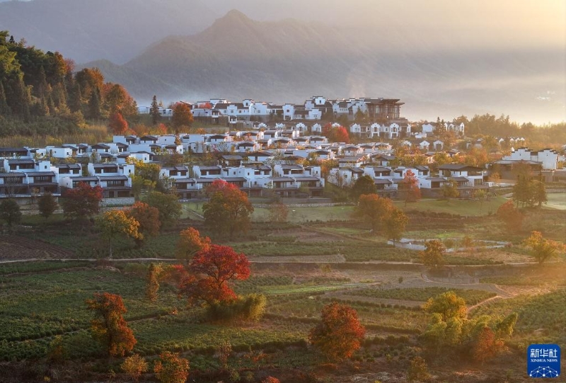 11月1日在安徽省黃山市黟縣宏村鎮(zhèn)盧村拍攝的秋景(無人機(jī)照片)。