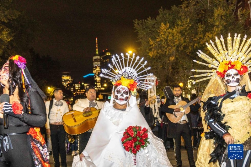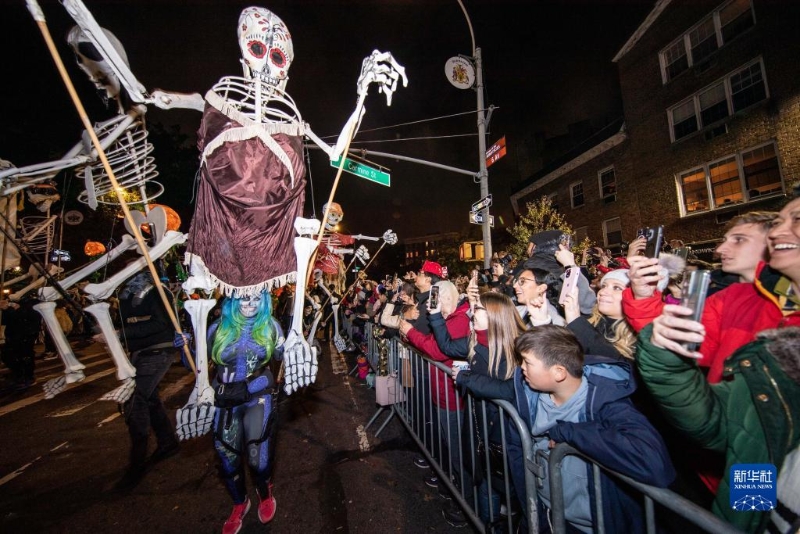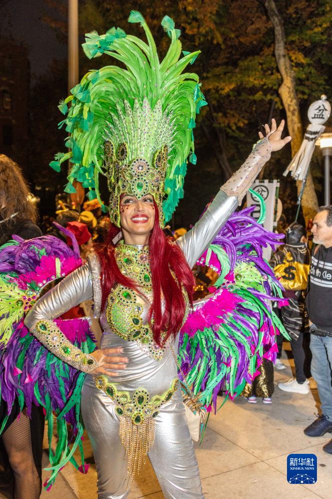 10月31日,人們?cè)诿绹?guó)紐約曼哈頓參加萬圣夜大游行。