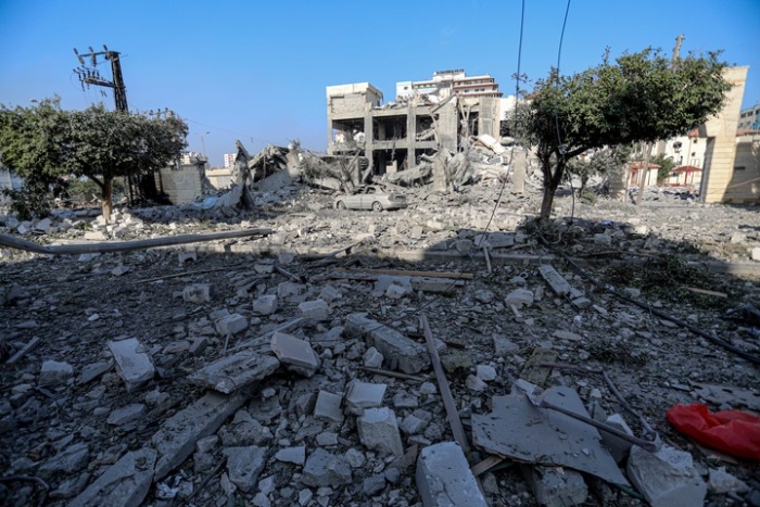 這是10月31日在加沙地帶北部拍攝的以軍空襲后的廢墟。新華社發(fā)