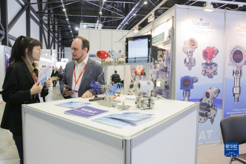 這是11月1日在俄羅斯圣彼得堡拍攝的第十二屆圣彼得堡國際天然氣論壇的參展中國企業(yè)展臺。